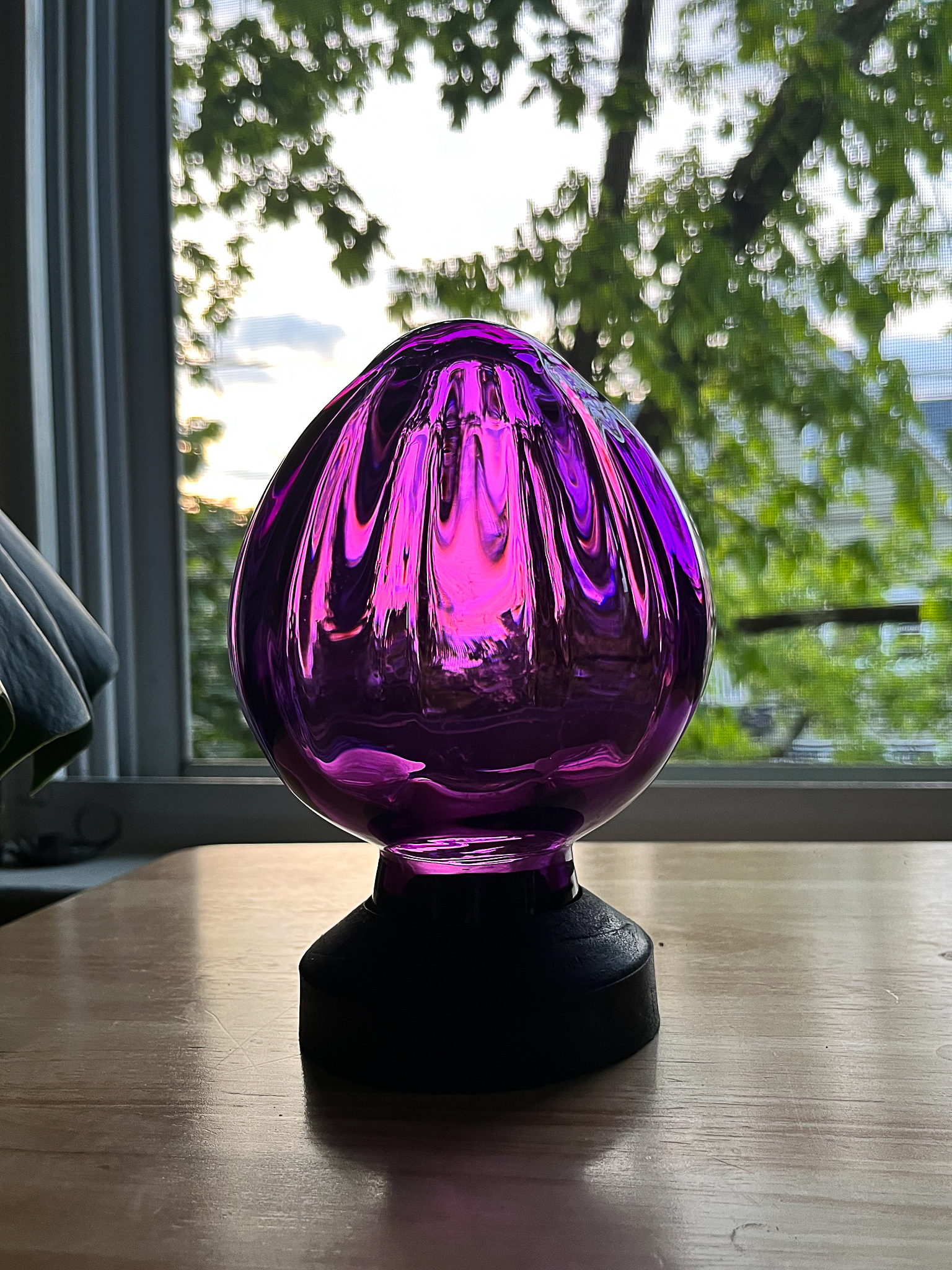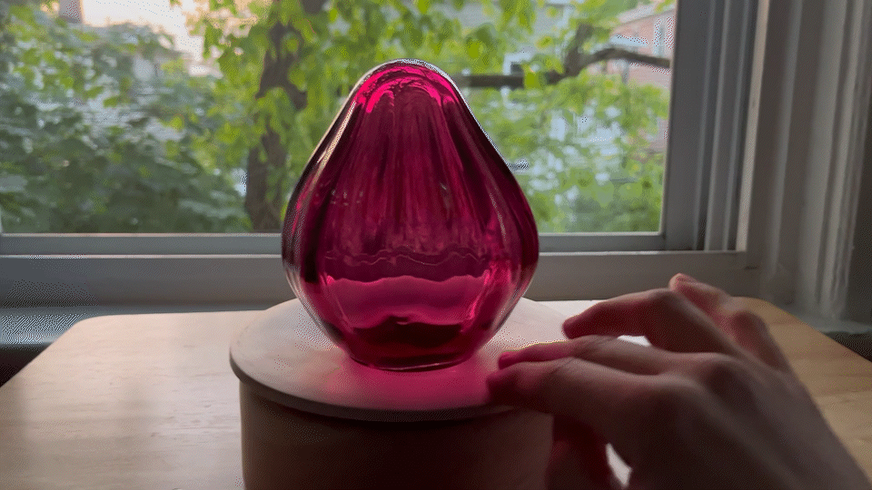 After interacting with the glass pieces and having a blast producing effects, I wanted to bring that playful experience into the design of the lamp itself.